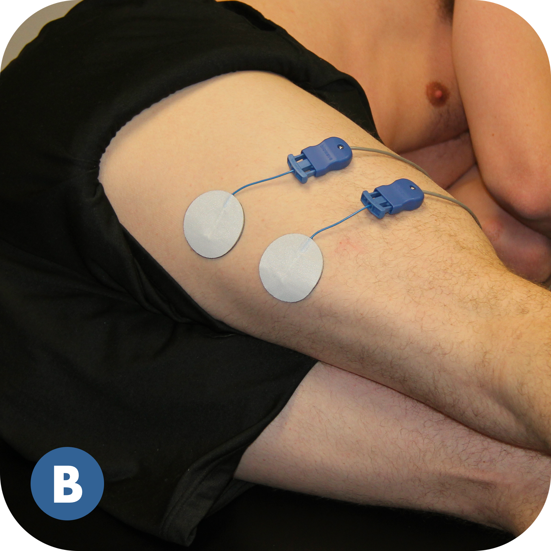 Do NOT place electrodes over the heart, or across the thoracic volume. Electrodes can be applied to the back of the thorax and lateral aspect of the upper limb (i.e. below/down the shoulder).