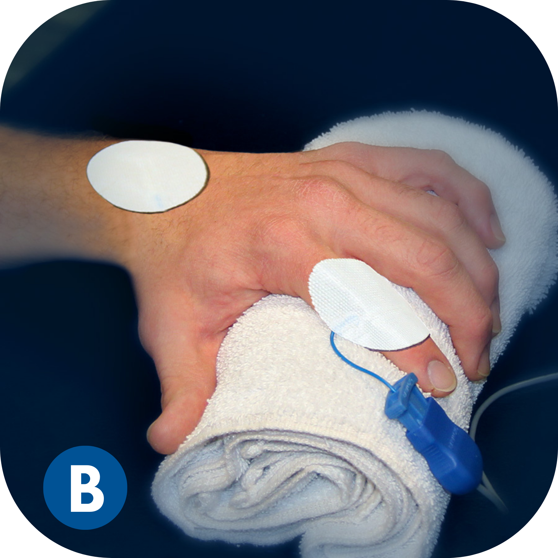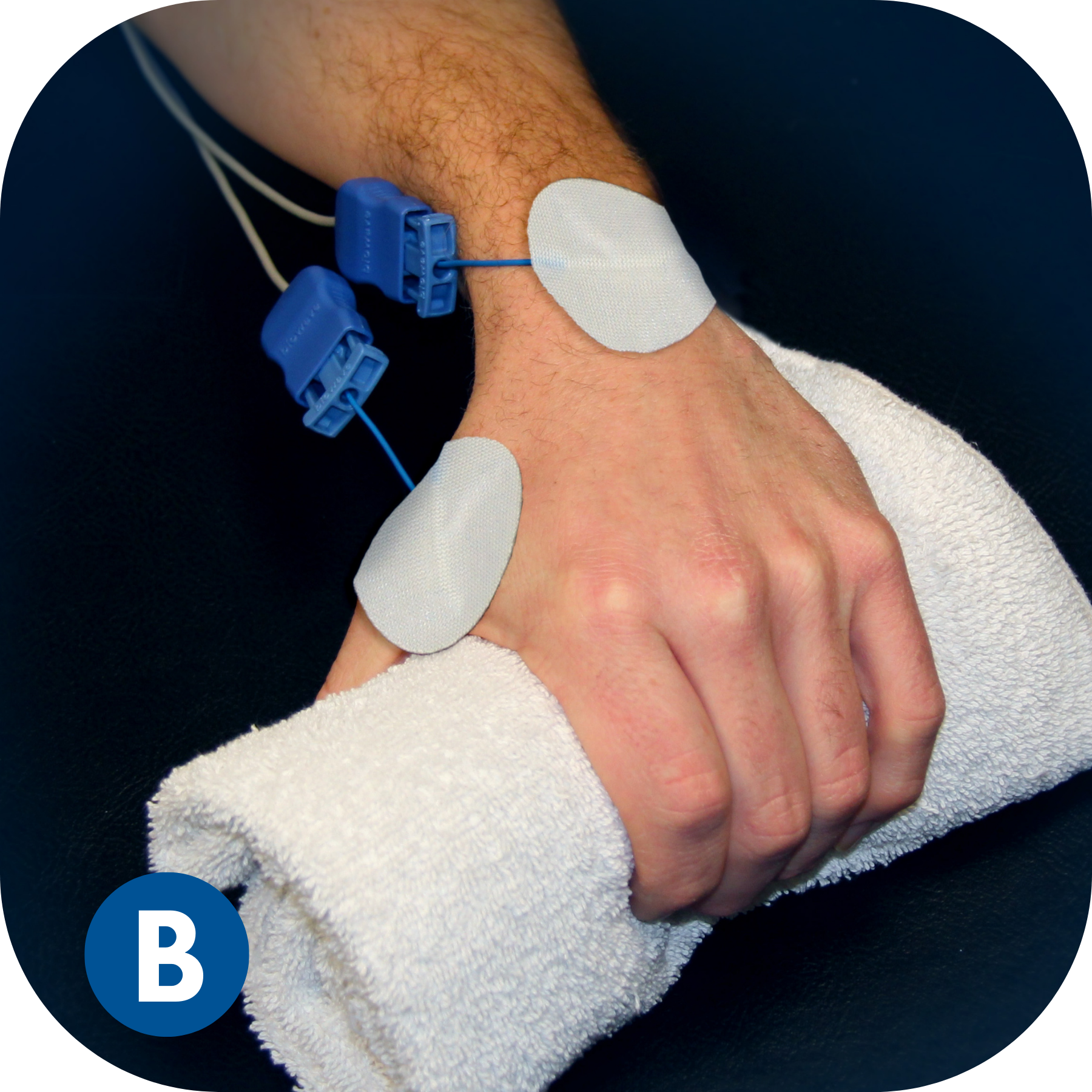 BioWaveGO electrode placements are different from conventional electrical stimulation. The mixing of the patented therapeutic signals occurs in a 3.5-inch hemishpere, not along the surface of the skin between the electrodes. As a result, electrodes need to be placed directly over locations of pain, or one electrode over a single location of pain and a second over a comfortable location to recieve stimulation – typically over a bony prominence near the treatment site.