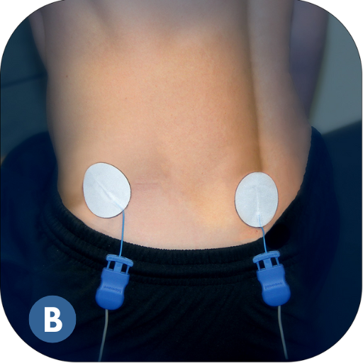 BioWaveGO electrode placements are different from conventional electrical stimulation. The mixing of the patented therapeutic signals occurs in a 3.5-inch hemishpere, not along the surface of the skin between the electrodes. As a result, electrodes need to be placed directly over locations of pain, or one electrode over a single location of pain and a second over a comfortable location to recieve stimulation – typically over a bony prominence near the treatment site.
