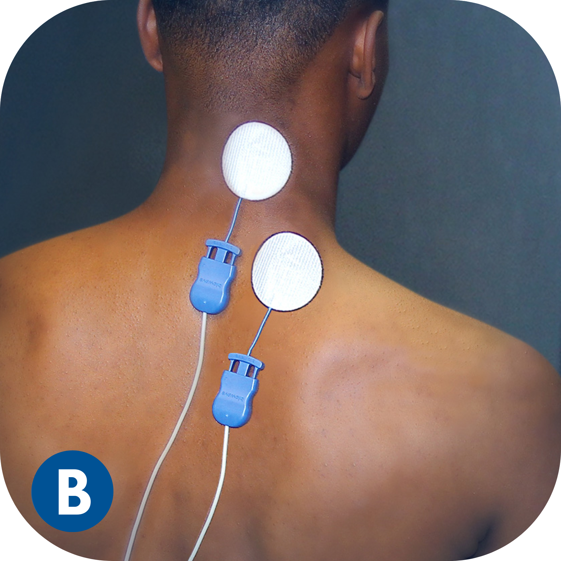 BioWaveGO electrode placements are different from conventional electrical stimulation. The mixing of the patented therapeutic signals occurs in a 3.5-inch hemishpere, not along the surface of the skin between the electrodes. As a result, electrodes need to be placed directly over locations of pain, or one electrode over a single location of pain and a second over a comfortable location to recieve stimulation – typically over a bony prominence near the treatment site.