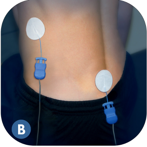 BioWaveGO electrode placements are different from conventional electrical stimulation. The mixing of the patented therapeutic signals occurs in a 3.5-inch hemishpere, not along the surface of the skin between the electrodes. As a result, electrodes need to be placed directly over locations of pain, or one electrode over a single location of pain and a second over a comfortable location to recieve stimulation – typically over a bony prominence near the treatment site.