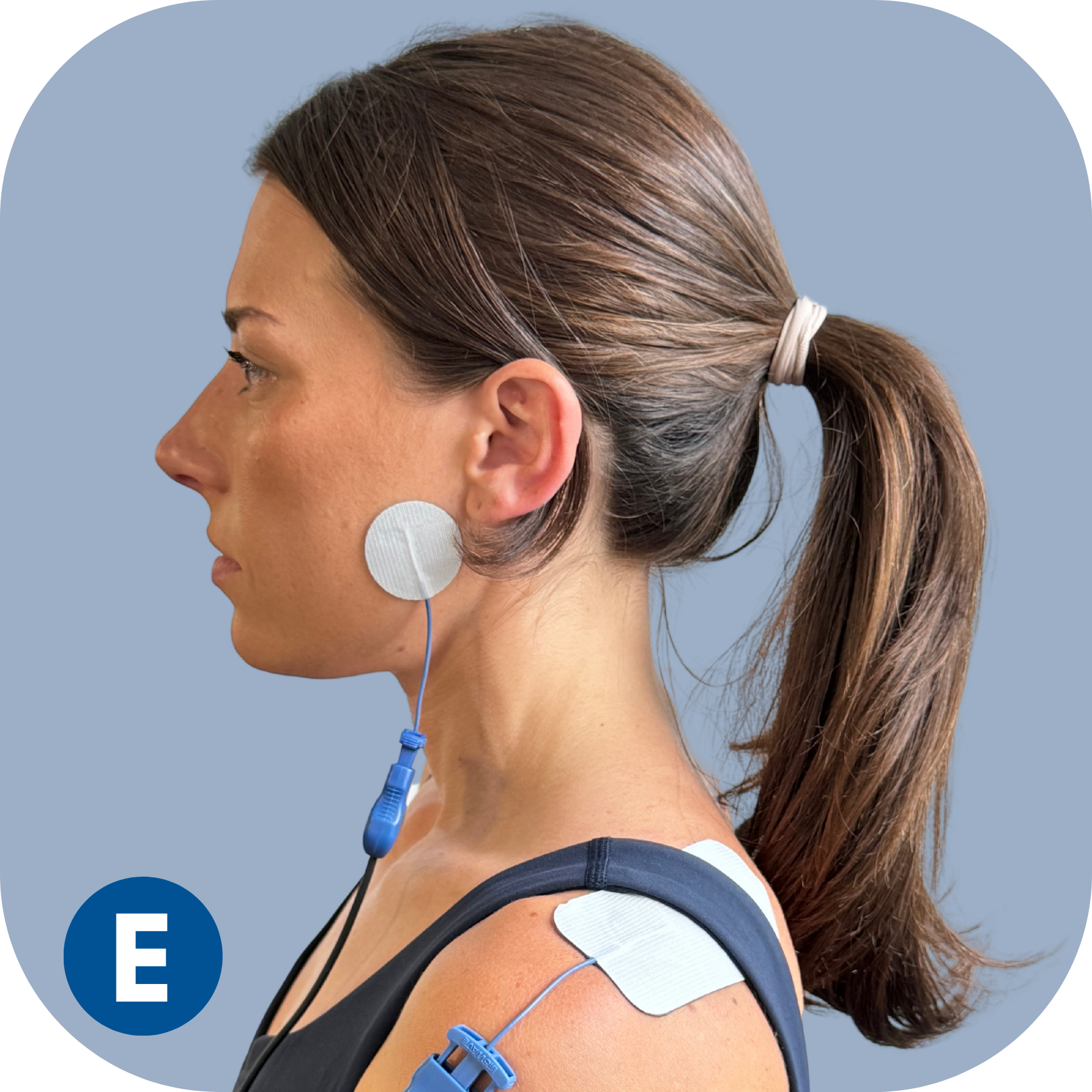 Do NOT place electrodes over the heart, or across the thoracic volume. Electrodes can be applied to the back of the thorax and lateral aspect of the upper limb (i.e. below/down the shoulder).